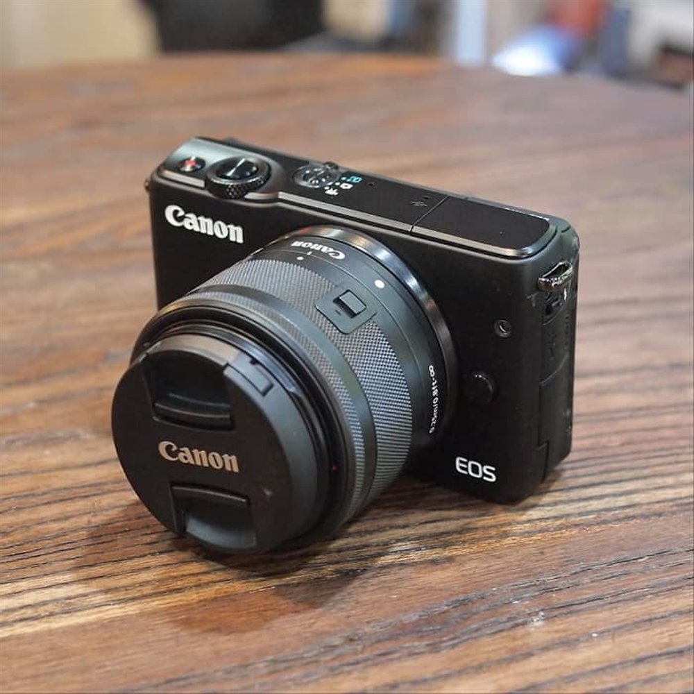 Chiếc máy ảnh Canon cho người mới bắt đầu này có ngoại hình nhỏ gọn, kích thước 4.2 x 2.6 x 1.3 inches, nặng 300 gram rất tiện đem theo đi du lịch. Màn hình LCD cảm ứng 3 inch có khả năng lật 180 độ, độ phân giải màn hình cao 1.04 triệu điểm ảnh. Cảm biến APS-C, độ phân giải 18MP, dải ISO rộng từ 100-12800. Hệ thống lấy nét lai CMOS AF II trên M10 có 49 điểm lấy nét, nhận diện khuôn mặt, bám nét… Máy ảnh Mirrorless Canon EOS M10 98% chính hãng có thể quay phim full HD, tích hợp Wifi, NFC giúp kết nối nhanh chóng. Giá tham khảo 5.200.000 đồng.